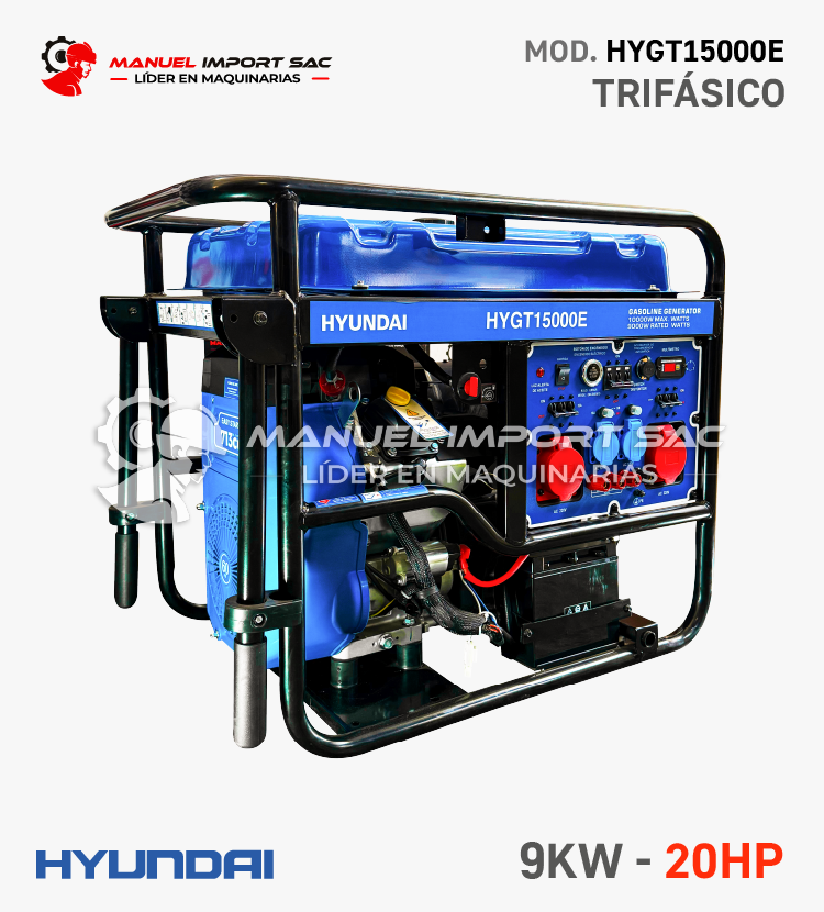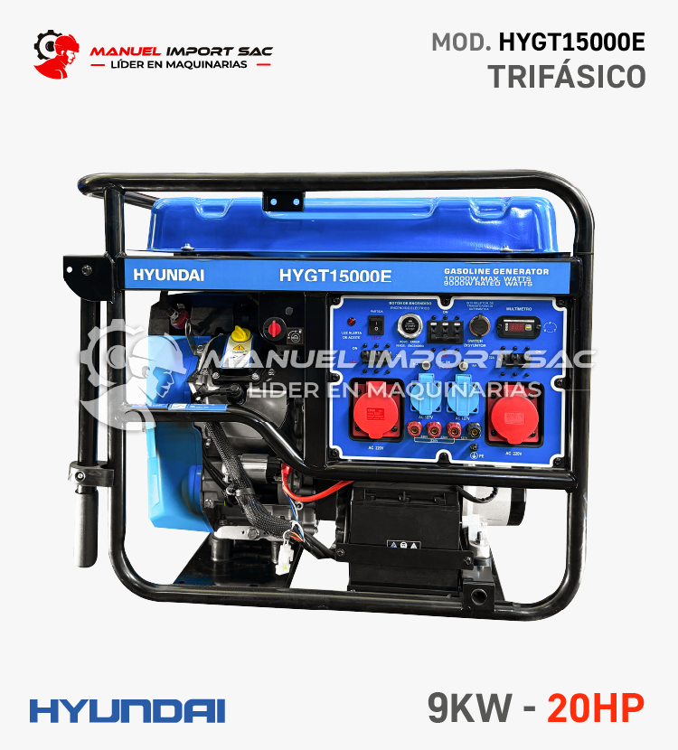 Generador Hyundai HYGT15000E 20HP 9KW Trifásico Gasolinero